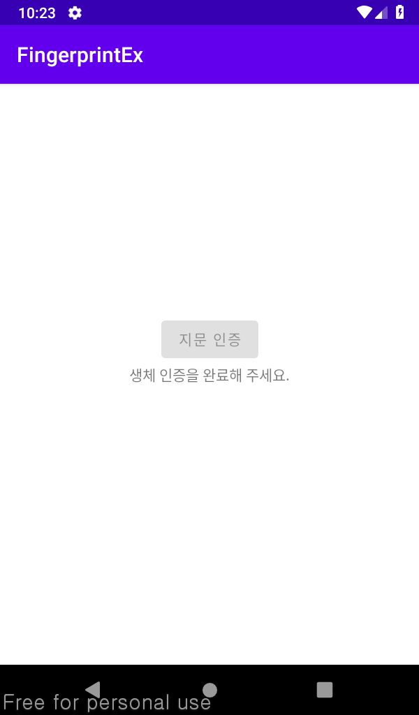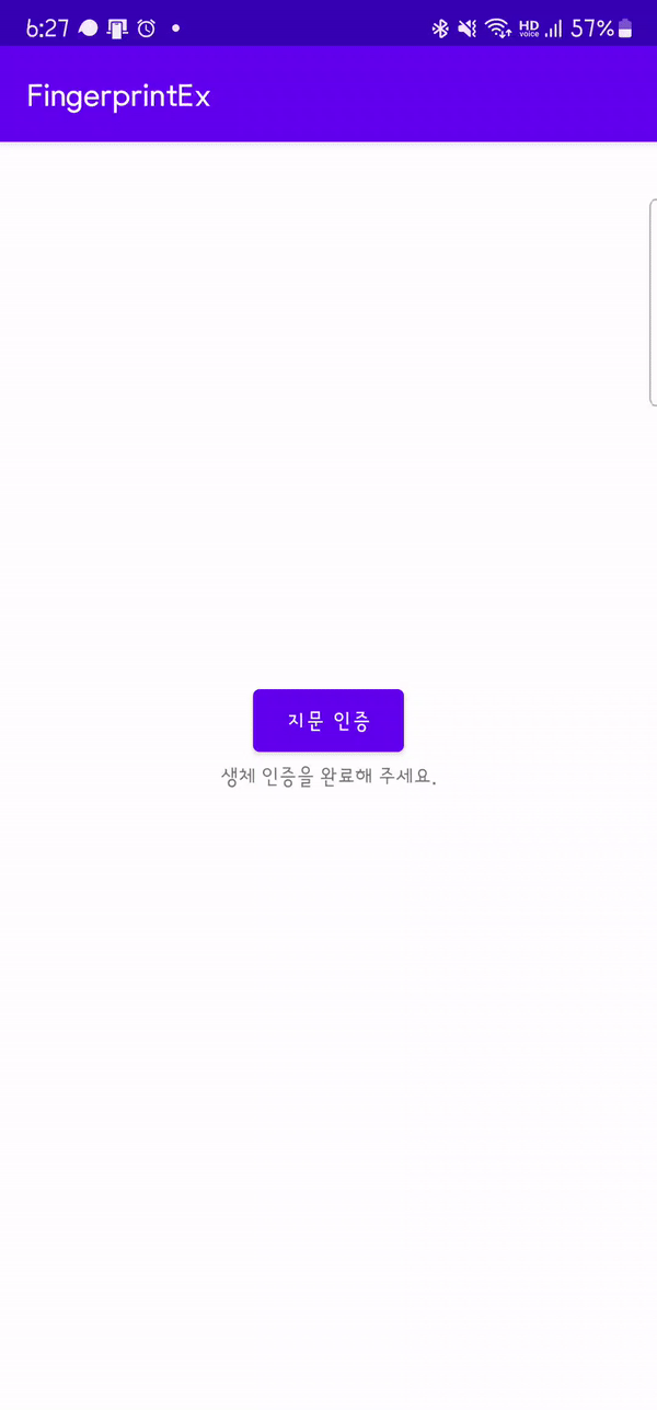 setBiometricPrompt() 메서드는생체 인증 Prompt를 생성하고 생체 인증 Callback을 등록하여 줍니다. 생체 인증이 성공하게 된다면 txtBio의 text를 '인증 성공!'으로 나타내 주고, 생체 인증에 실패하게 된다면 '인증 실패!'로 나타내 줍니다. 이 외의 Error가 발생한다면 반환된 errString을 TextView에 표시해줍니다.