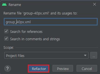 파일이름을 수정하고 Refactor를 클릭해줍니다.